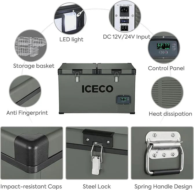 ICECO VL60 Dual Zone Metal Freezer with Cover 60LT