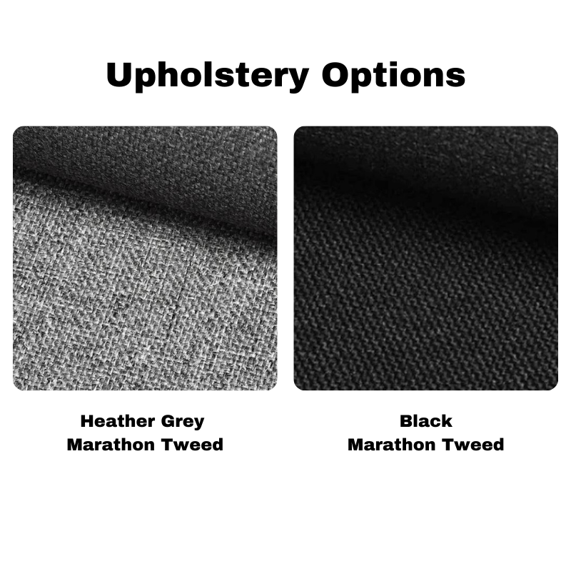Upholstered Finish: Available in Grey Heather or Black Marathon Tweed for a premium soft-touch upgrade. (Ships in 1.5–2 weeks.)