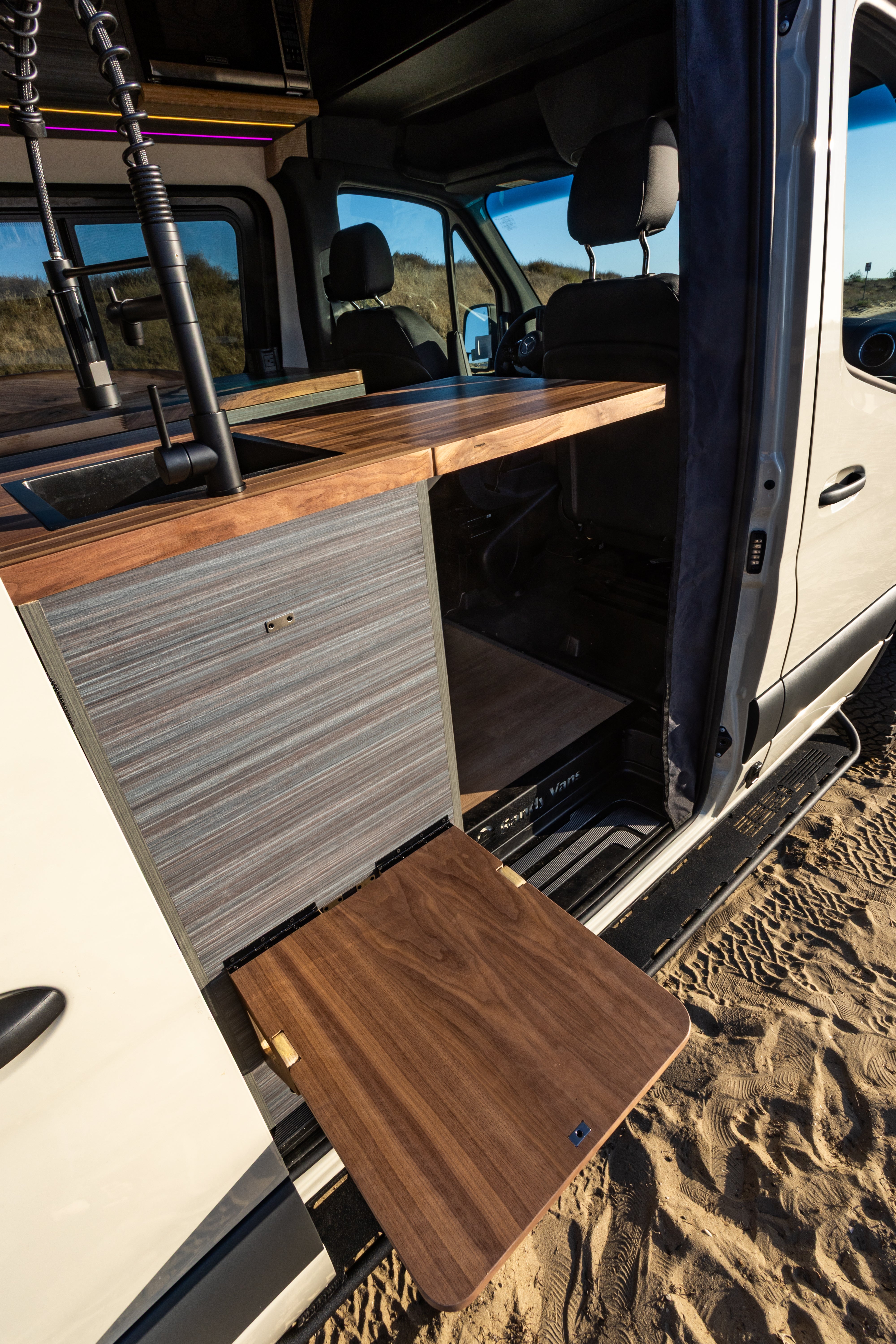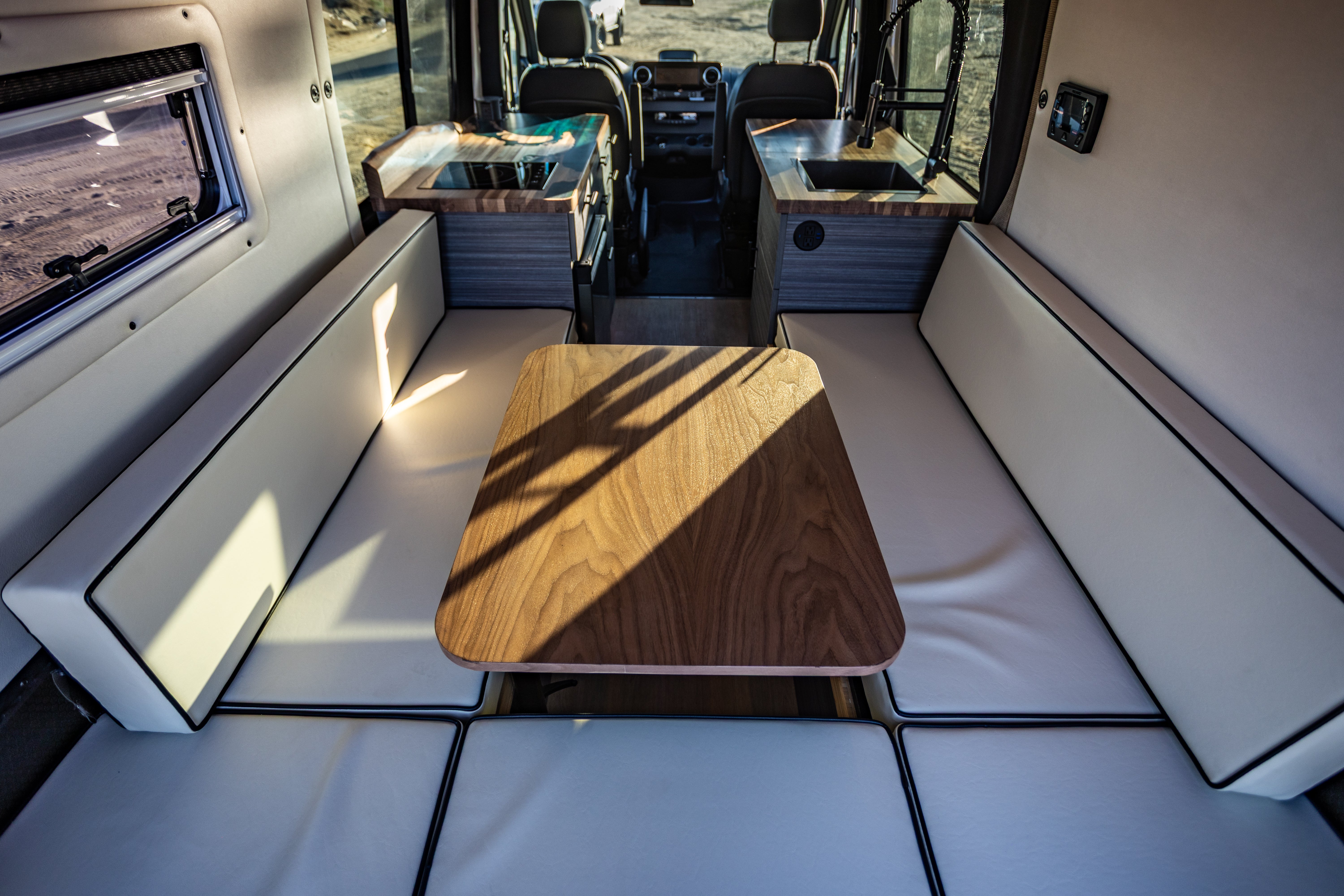 The SV signature layout offers a social setting, so nobody gets left behind. This AWD Diesel Sprinter 144 build offers a spacious U shaped dinette featuring premium bamboo finish, the rig will be sure to wow your guests as you comfortably seat 6 for dinner and post adventure stories. Both captain swivel seat allows the setting to be open and inviting for the whole crew.