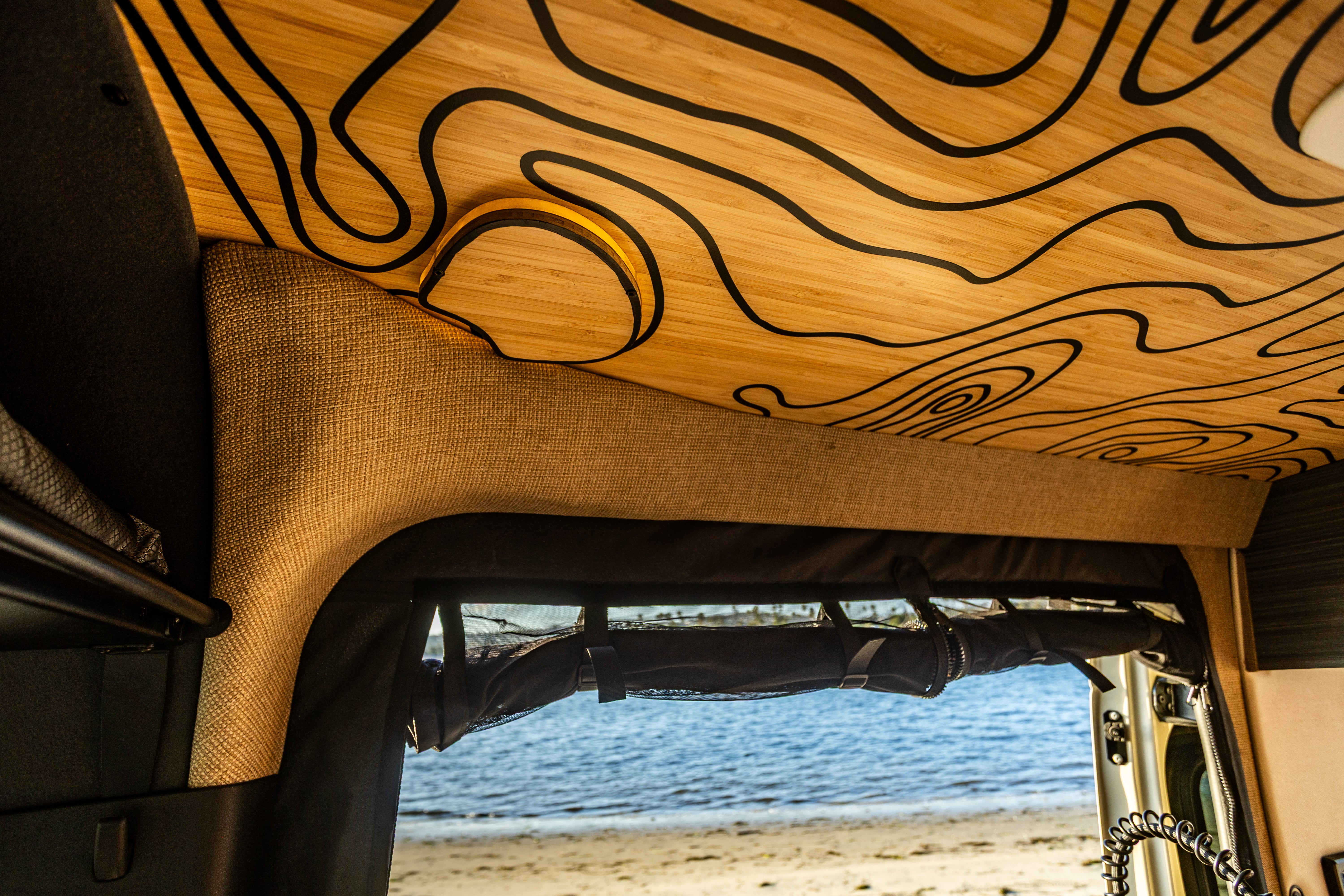 Sandy Vans Roof Rack combined with the SV Side Ladder, Rear Rack & Boost Box offers loads of additional exterior storage – and did we mention a 5ft rooftop deck?! The decking and ladder are fully L track compatible meaning attachment options are endless (spare tanks, shovels, tires, etc). The Black Rhino wheels and beefy BFG AT tires ensures you can adventure anywhere your heart desires. Sandbar Roof Rack is fully equipped with the F45s awning to properly set up camp once you reach your destination!