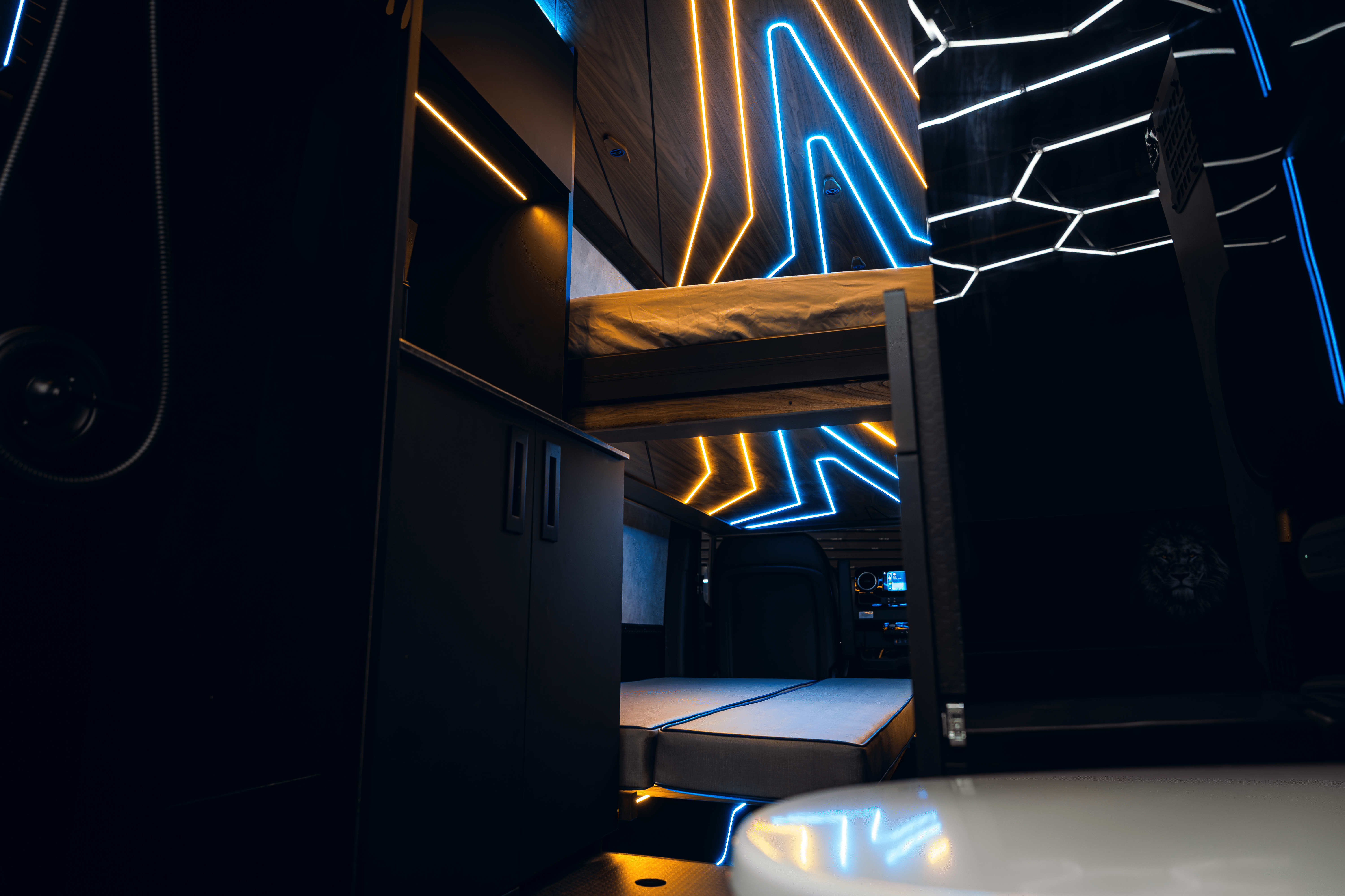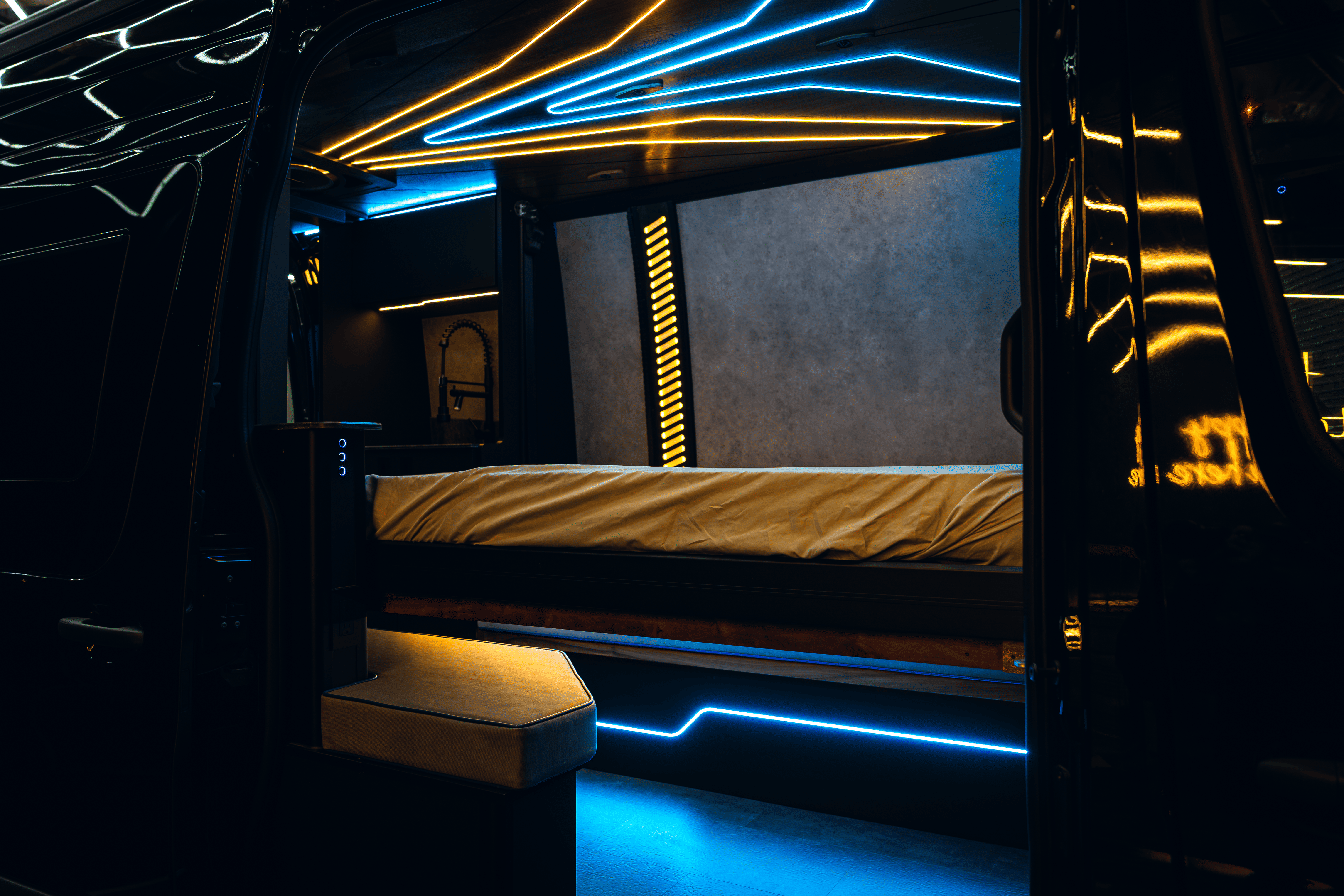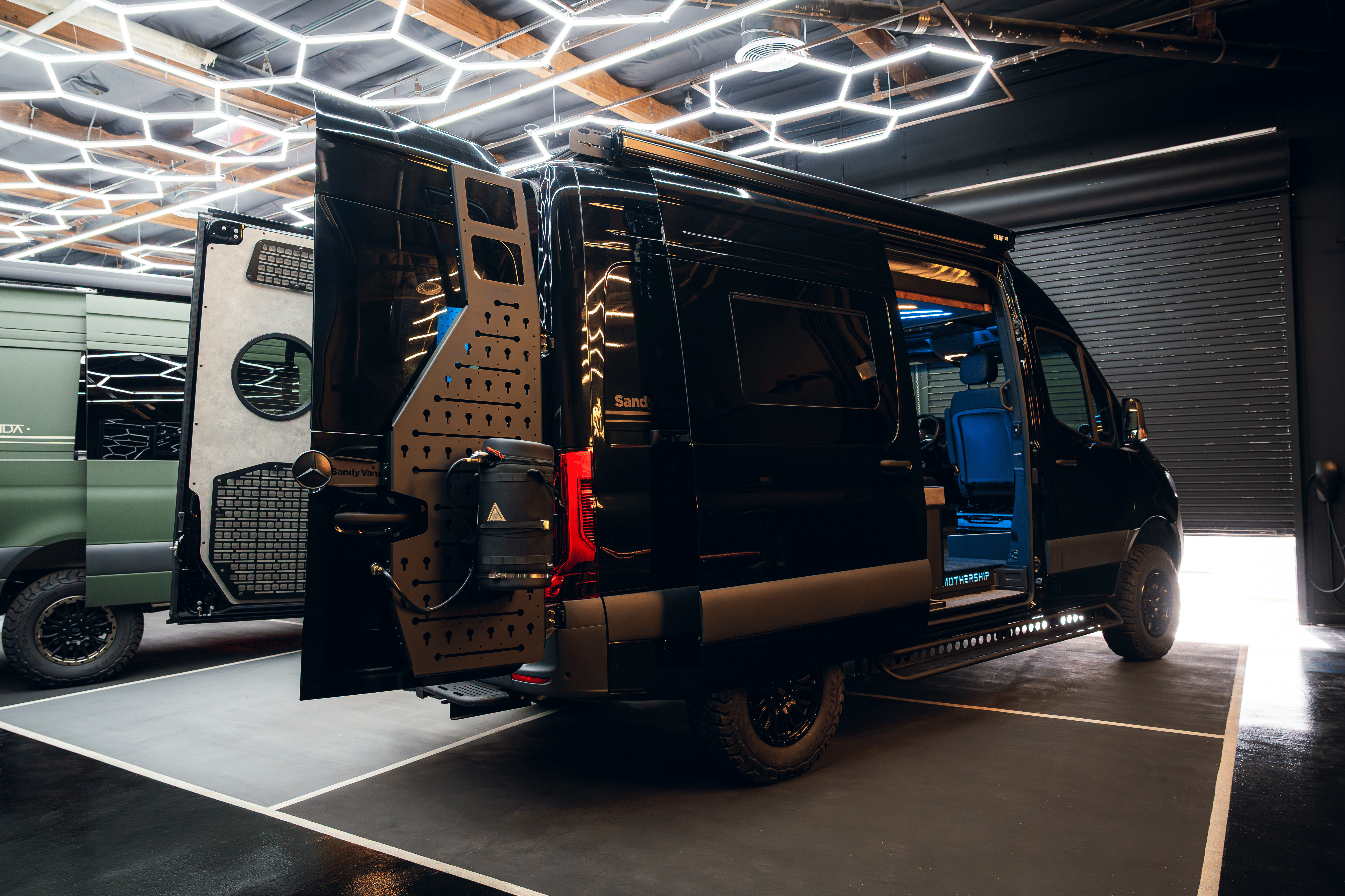 Built for serious exploration and complete off-grid capability, the Mothership by Sandy Vans is the ultimate adventure command center. Designed on a 2025 Mercedes-Benz Sprinter AWD 144″ chassis, this van blends rugged overland performance with refined, high-tech living systems—allowing you to go farther, stay longer, and travel in total comfort.