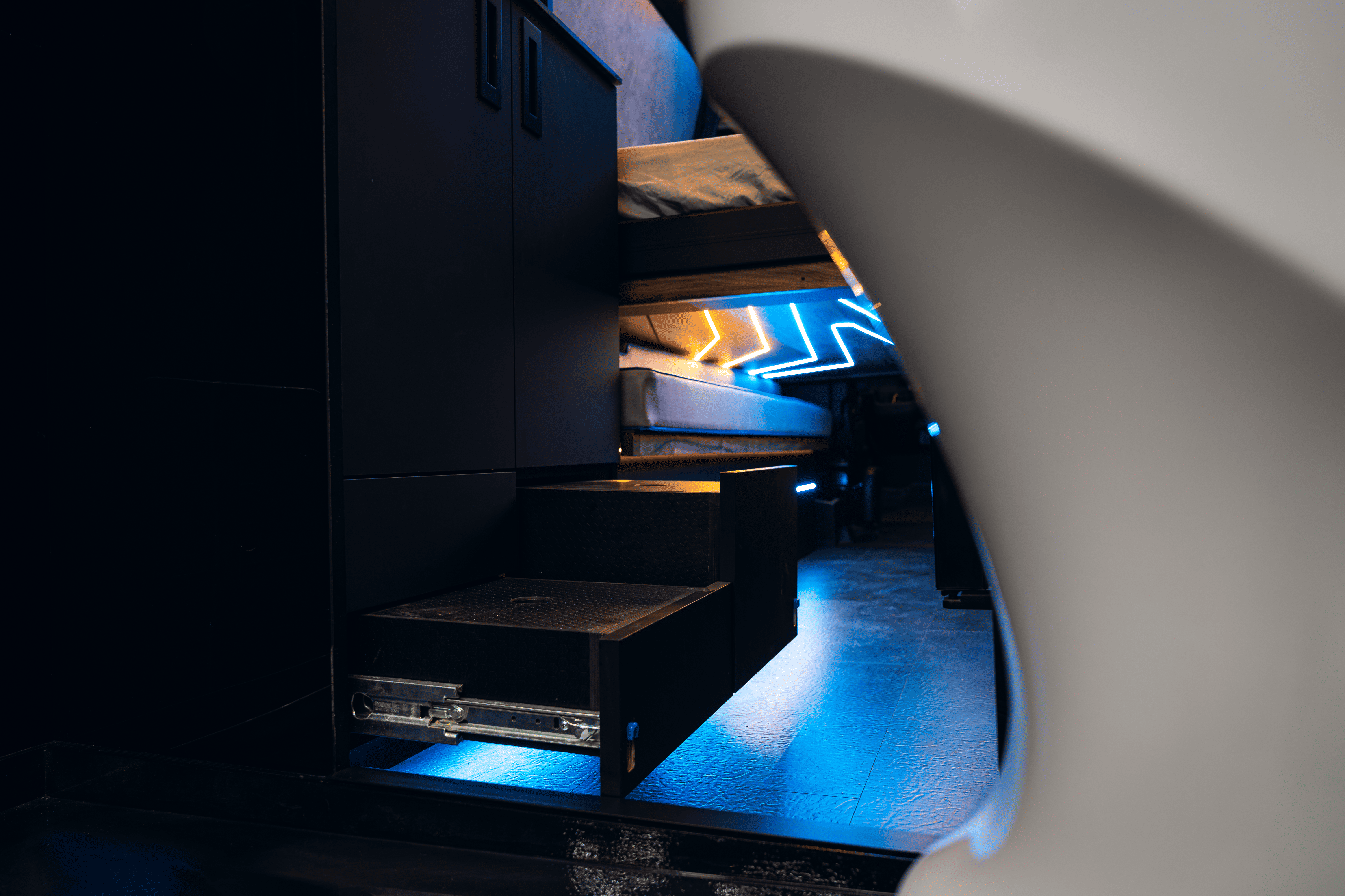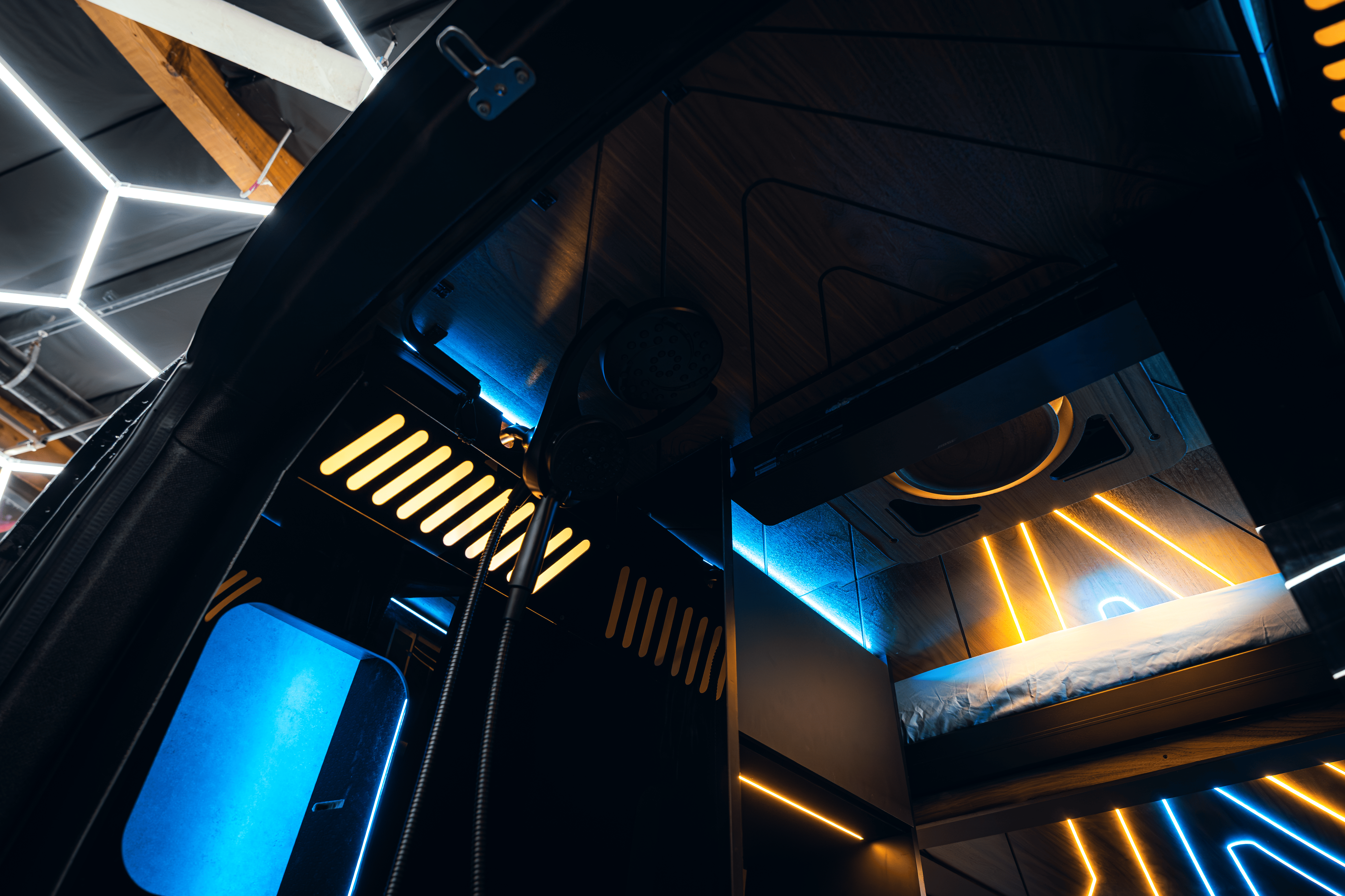 At the heart of the Mothership is an exceptionally powerful RedArc electrical system featuring over 600Ah of lithium battery capacity, a 3000W inverter, multiple solar panels, and a secondary alternator, giving you the freedom to operate fully off-grid for extended periods. Whether you’re powering the 12V Cruise N Comfort air conditioning, charging gear, or hosting a movie night with the LUMI-1 smart projector and JBL sound system, this van has the energy infrastructure to support life on the road without compromise.